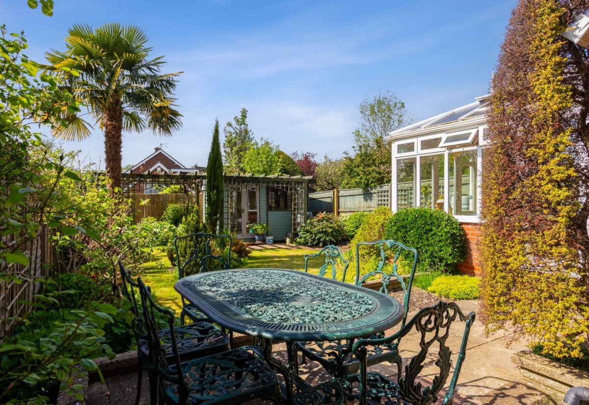 To the front of the property is a brick paved driveway providing off road parking for up to two cars, with well planted inset flower beds. Immediately to the rear of the property is a good sized area of paved terrace, partially shaded by a small overhanging roof, providing plenty of external sitting and dining options. Beyond the mature rear garden has been mainly laid to lawn, with a number of exceptionally well planted beds containing an attractive mix of mature trees, shrubs and flowering plants. At the bottom of the garden is a good sized shed and a pergola, providing dappled shade.