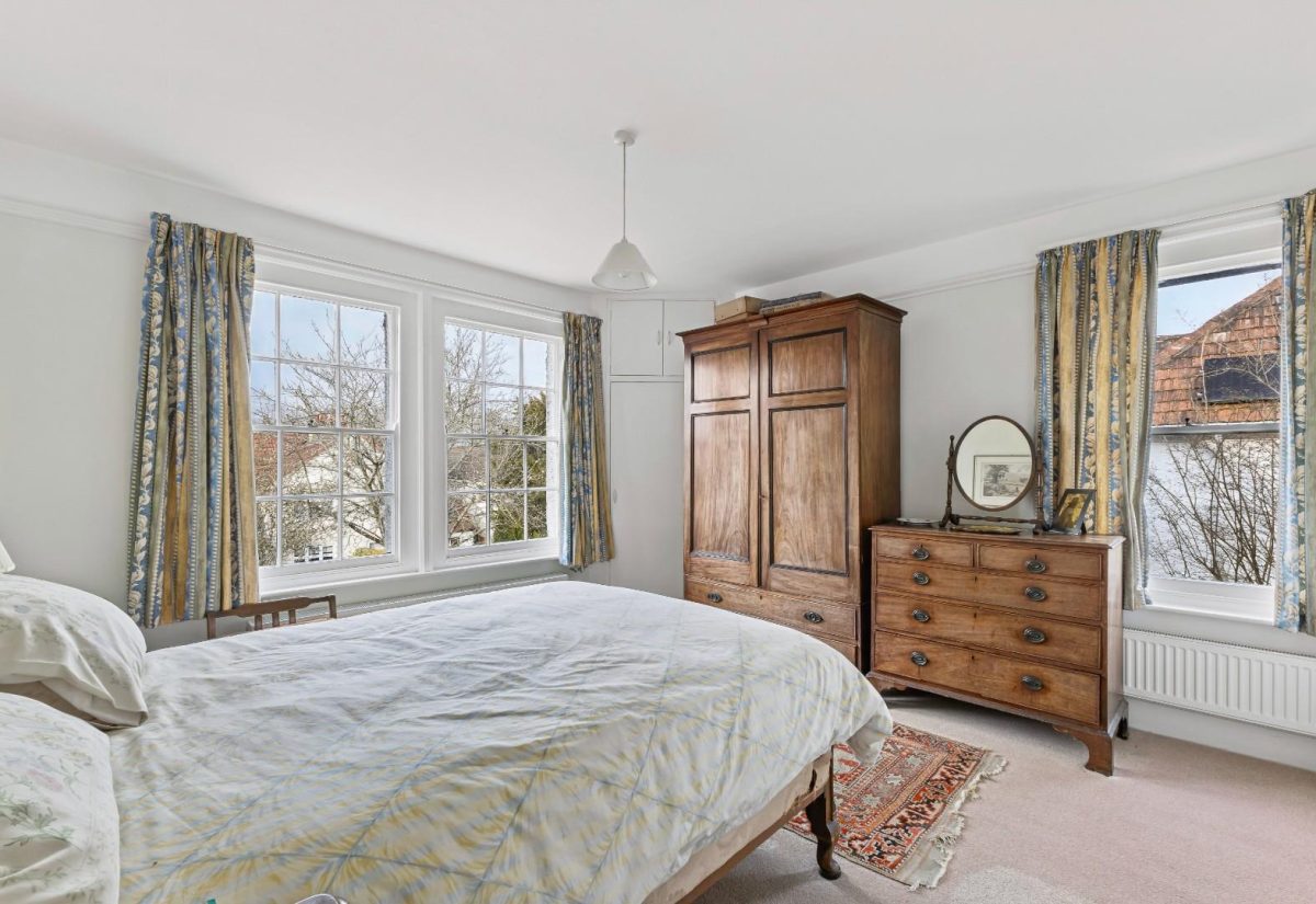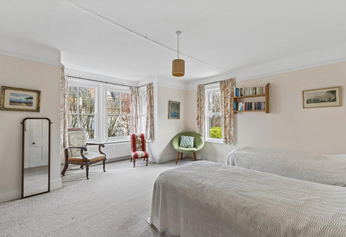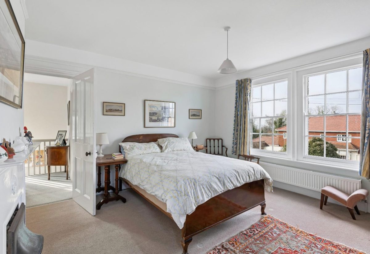 In addition, there are two further generously sized double bedrooms. Both rooms benefit from a double-aspect layout, allowing light to flood in from multiple directions, creating bright and airy interiors. Each of these bedrooms also retains charming period fireplaces, adding character and a sense of heritage to the spaces.