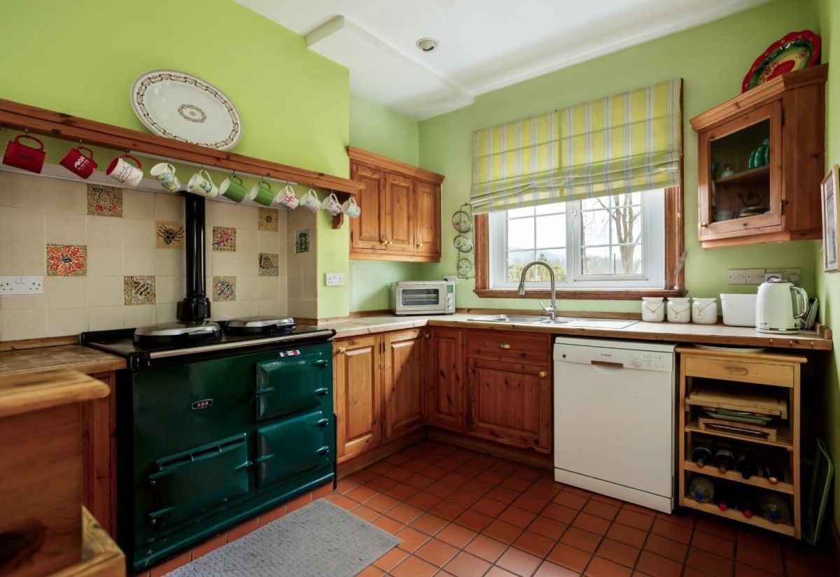 The kitchen is very well designed and beautifully hand crafted in pine which could easily be painted to suit one’s taste. A gorgeous green Aga sits in the middle of the kitchen supplying the true heartbeat to the house. There is plenty of storage, work space and a larder cupboard. Incorporated in the kitchen is a dining area and French windows leading out to a terrace perfect for outside entertaining.