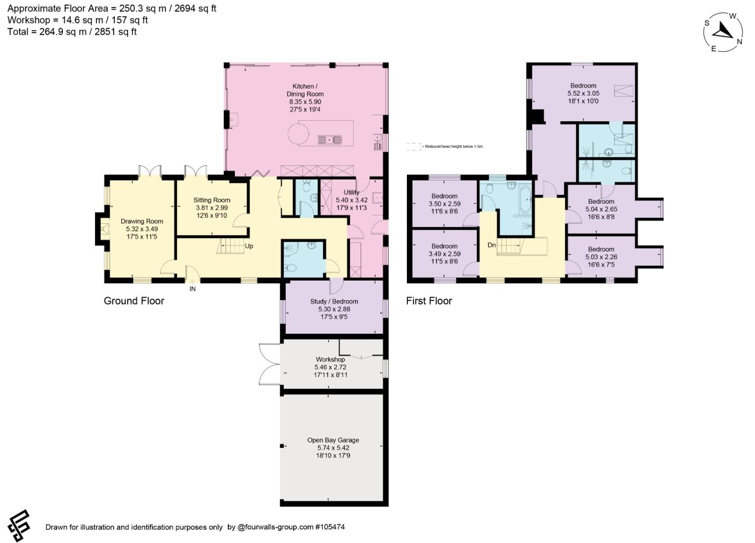 Upstairs is a wonderful principal bedroom suite with lovely views, featuring plenty of walk in wardrobe space, a dual aspect bedroom, and an ensuite bathroom. There are two double bedrooms to the south side of the house complimented by a well appointed bathroom incorporating a bath and separate shower. A further two bedrooms are to the north of the house, one of which benefits from an ensuite bathroom and a massive attic space offers scope to add further accommodation (subject to the usual consents).