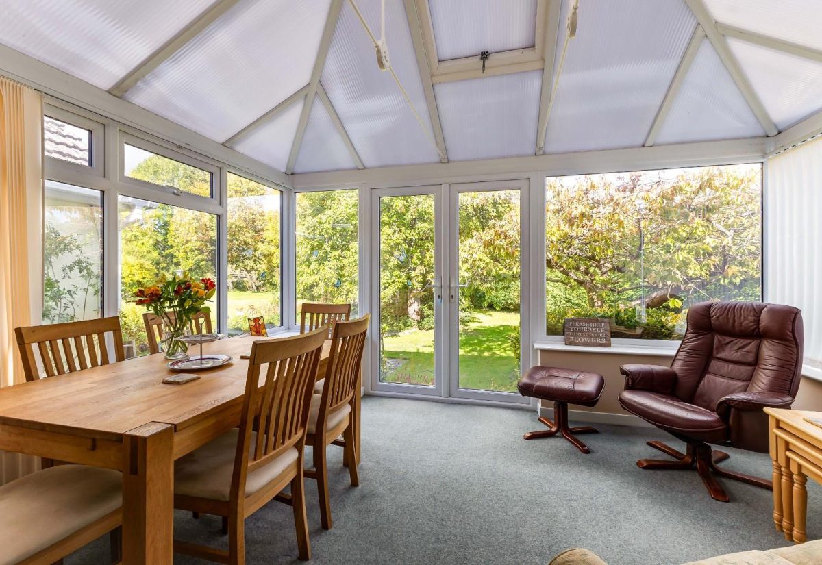 The attractive conservatory with French doors open directly onto the rear garden, providing lovely views and a seamless indoor-outdoor connection.