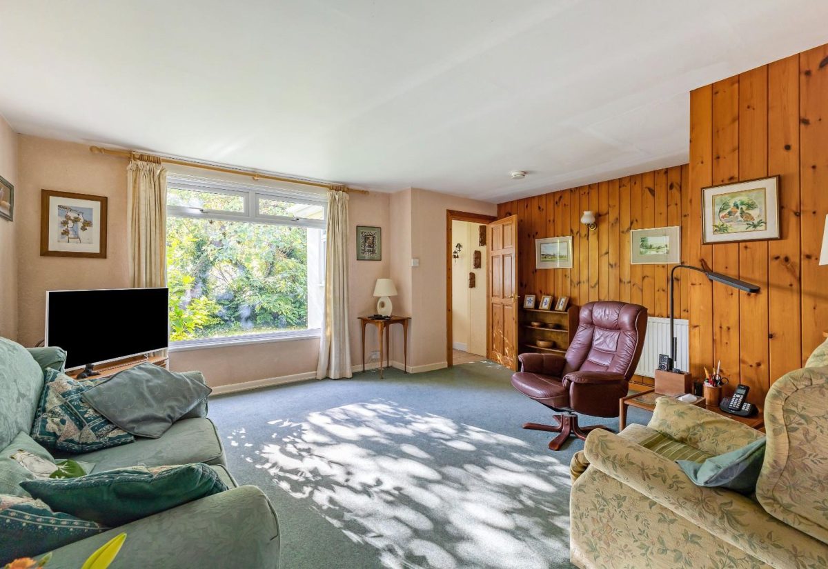 The living room enjoys a large double-glazed window overlooking the front garden, allowing for plenty of natural light. Multiple access points-leading to the conservatory/sunroom, the principal bedroom, and the kitchen.