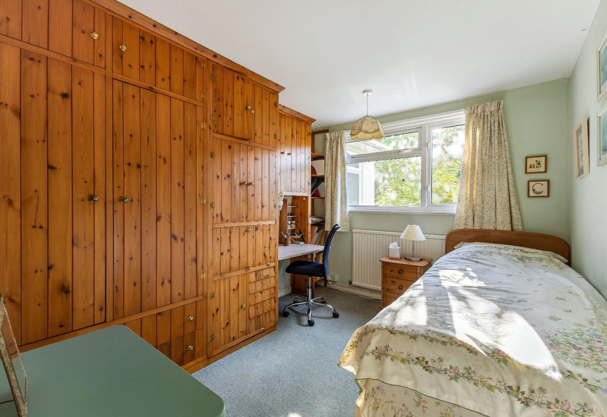 Two of the bedrooms are generous double rooms, both featuring fitted wardrobes and storage. The third bedroom is a smaller single room, ideal as an office.
