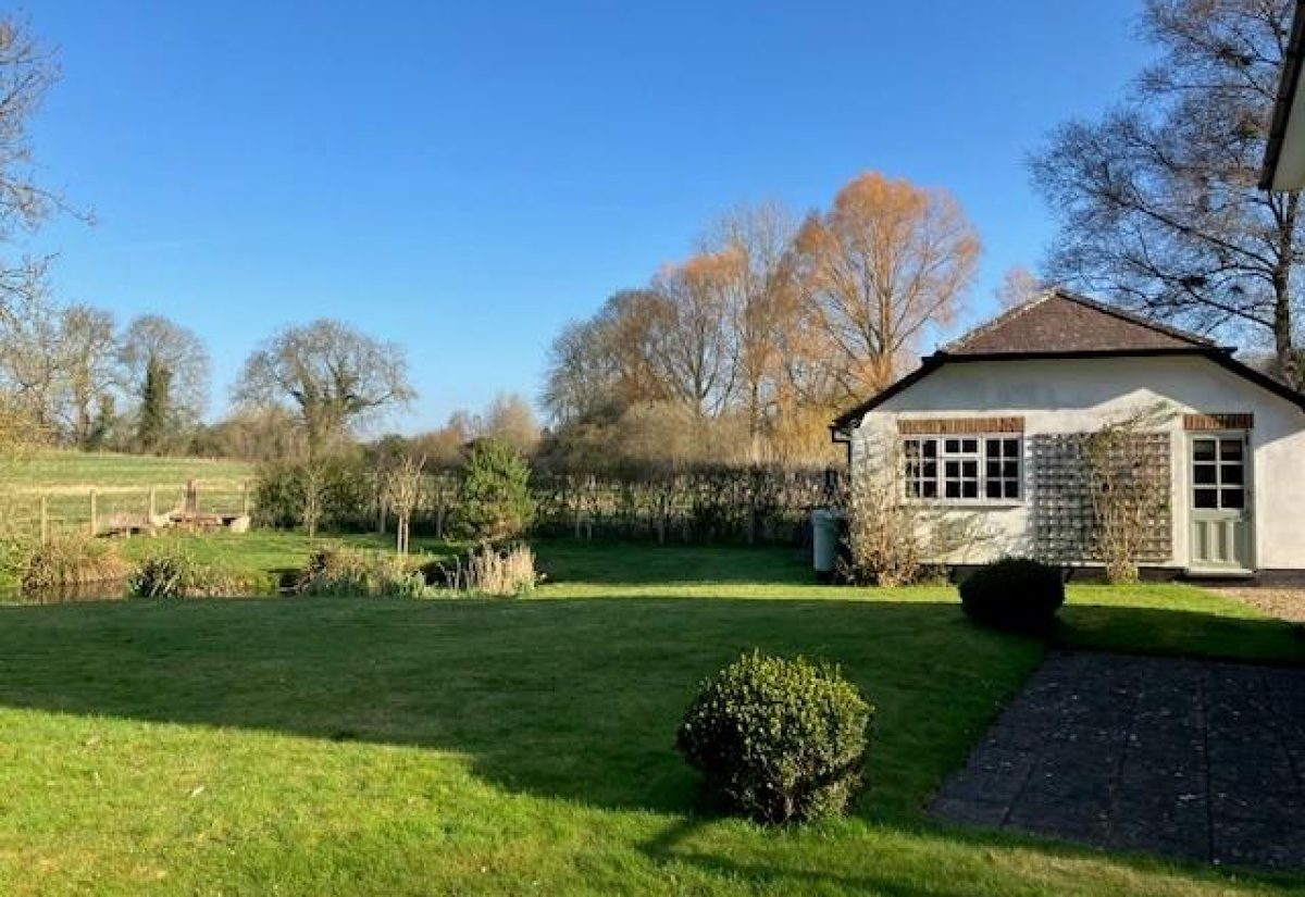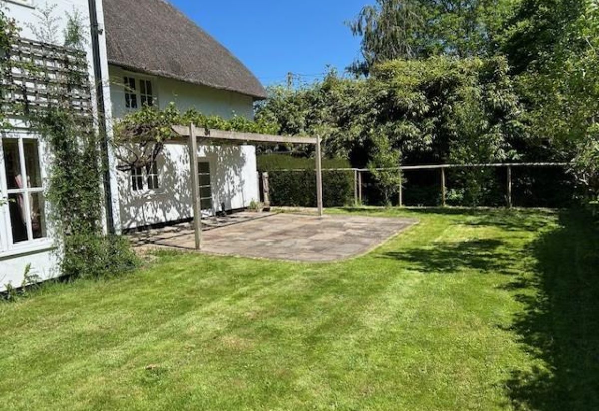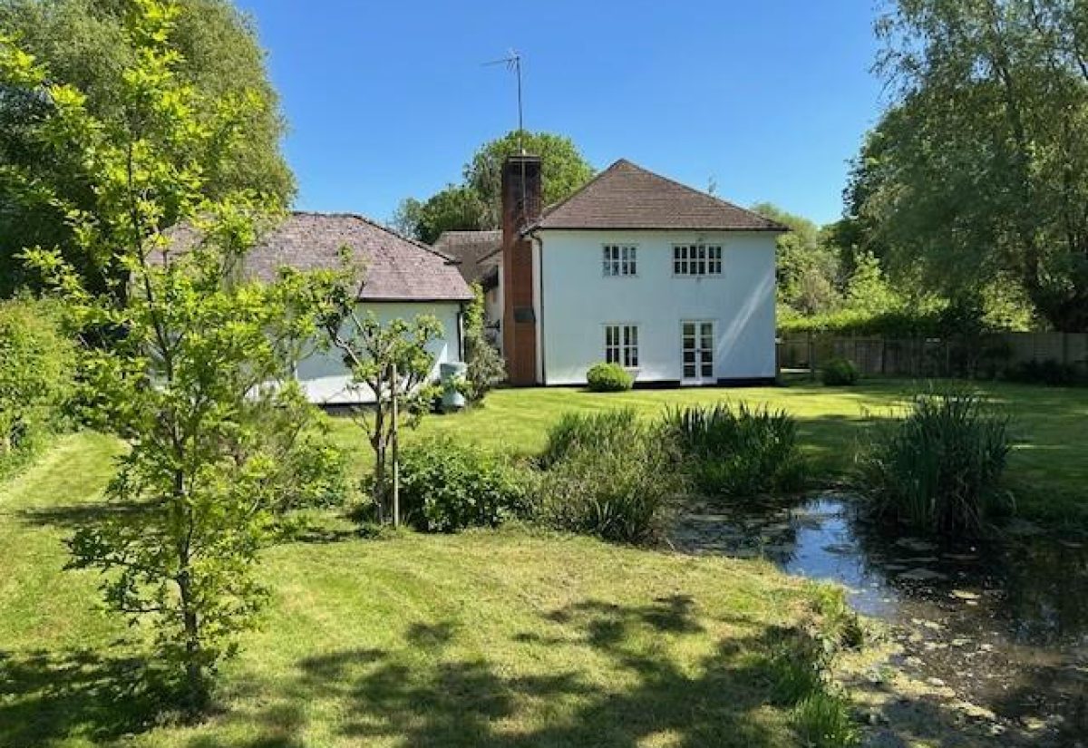 There is a large pond in the rear garden and two terraces, one with a wooden pergola creating an atmospheric ‘al fresco’ dining area. The Wallop Brook runs along the front of the property, crossed by a footbridge to the original front door of the property.