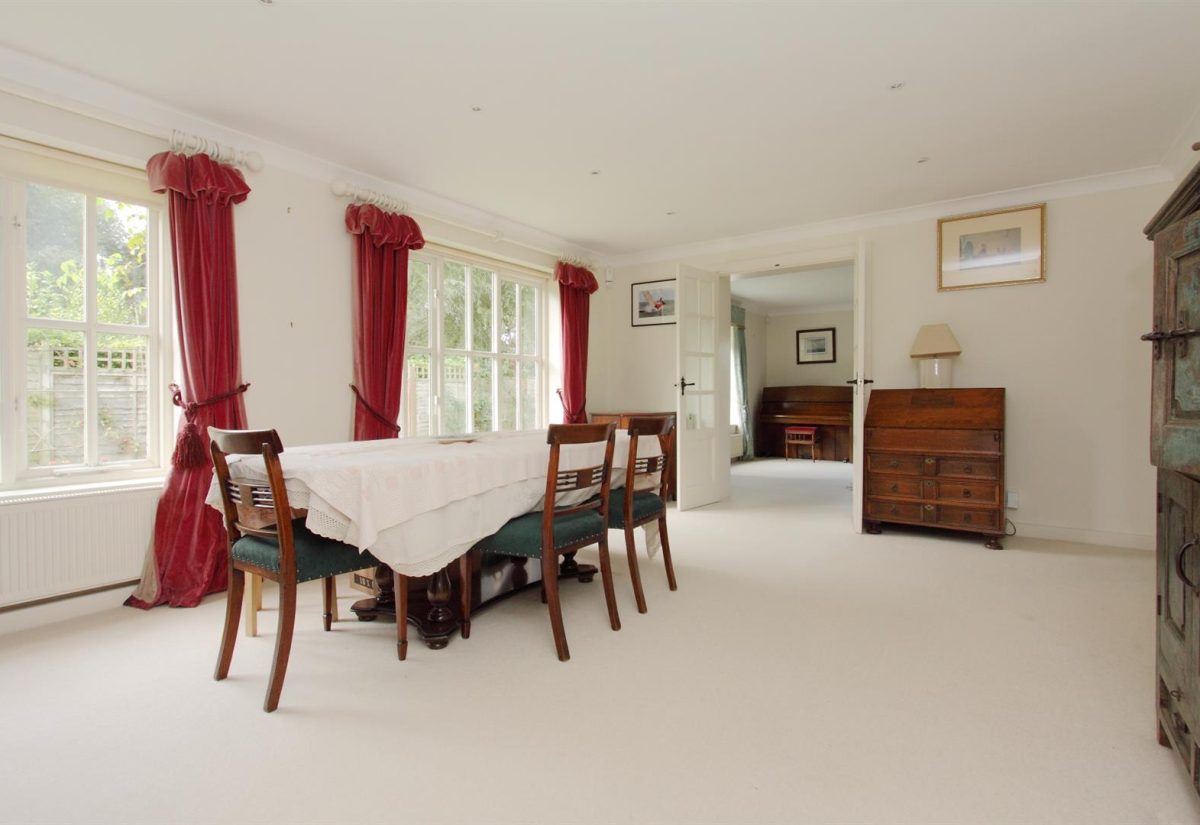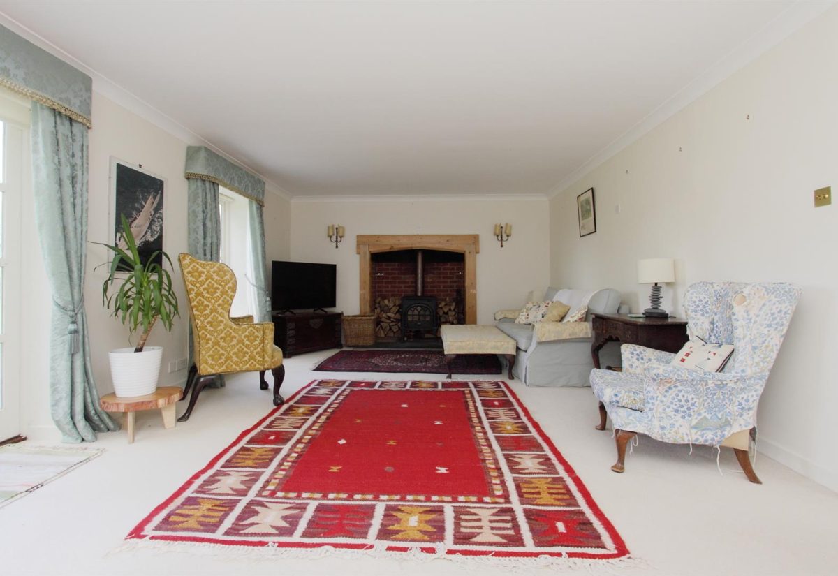 The kitchen leads through to the breakfast/sitting room with door to the rear terrace. From the hallway there is a cloakroom and door to the dining room which leads through to a good sized study/snug and stunning dual aspect drawing room which benefits from an inglenook fireplace with log burner and French doors to the garden.