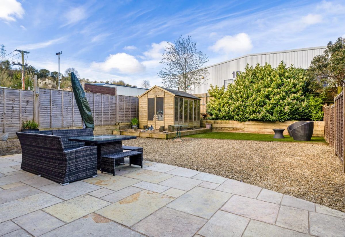 The rear south westly facing garden has been thoughtfully landscaped and improved by the current owner. It features a stone patio area, shingle sections, and a lawn, along with an attractive decking area with There an outbuilding offering excellent potential as a summer house or home office, ideal for remote working or entertaining. The garden enjoys a good degree of privacy, enhanced by mature trees at the rear, and is designed to be low maintenance.