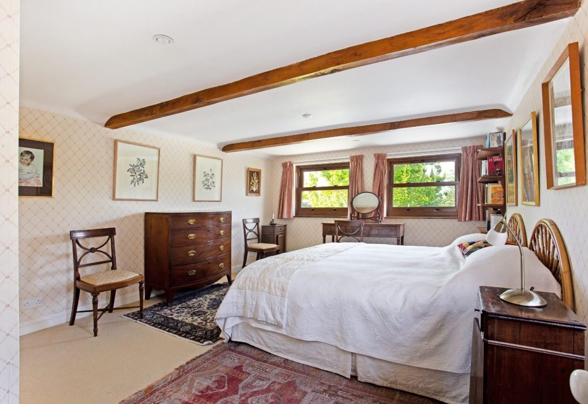 Upstairs, there are five bedrooms and two bathrooms (one ensuite) and doors out onto a balcony/terrace with views down the garden.
