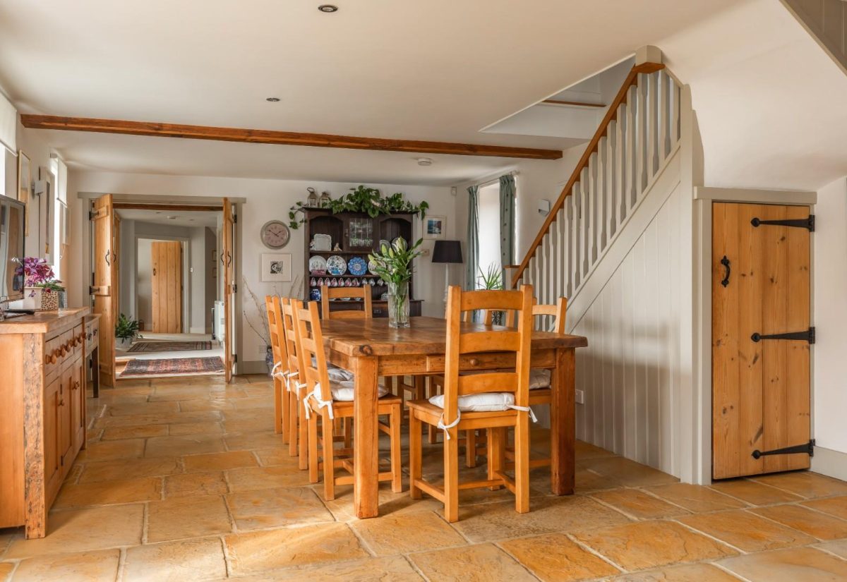 Warmed by under floor heating and fitted with a Rangemaster-style oven and other integral appliances, central island, handmade floor and wall units. Plenty of space for a large dining table. The adjoining Boot room has plenty of space for coat and shoe storage and a WC, just outside the external door are a useful hot and cold tap which walkers and dog owners will no doubt find useful. From the boot room the utility room boast plenty of space for laundry, plumbing for a washing machine and dryer.