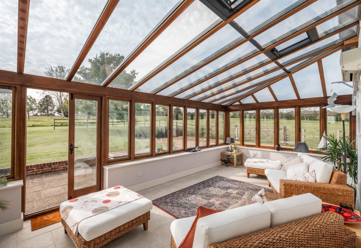 The property was converted about 20 years ago to a high specification which includes under floor heating on the ground floor, oak flooring in the reception rooms and benefits from delightful views across the surrounding countryside with the added benefit of numerous footpaths and bridleways providing access to nearby Pepperbox Hill and Mean Wood. There is a lapsed planning permission for the erecting of three stables, Haystore, tack room and change of use of land to equestrian use. The current owners added a south facing conservatory in 2010 with a delightful outlook over the gardens and paddocks.