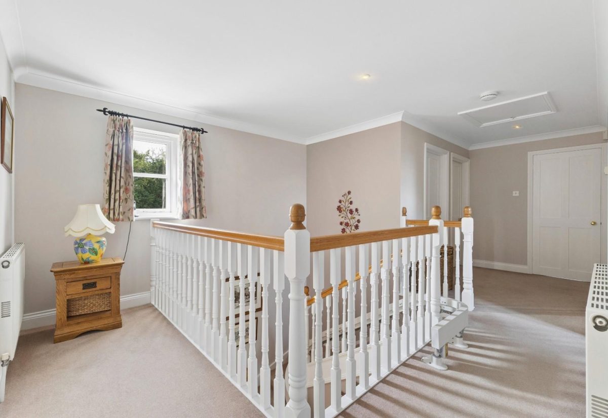 Upstairs, the galleried landing provides a nice sense of space, with the main bedroom facing out over the garden and field; there is plenty of built-in storage and an ensuite shower room as well. A further bedroom has an ensuite shower room whilst three further bedrooms share the family bathroom. There is also a decent linen cupboard, with drop down-ladder offering easy access to the part-boarded loft space.
