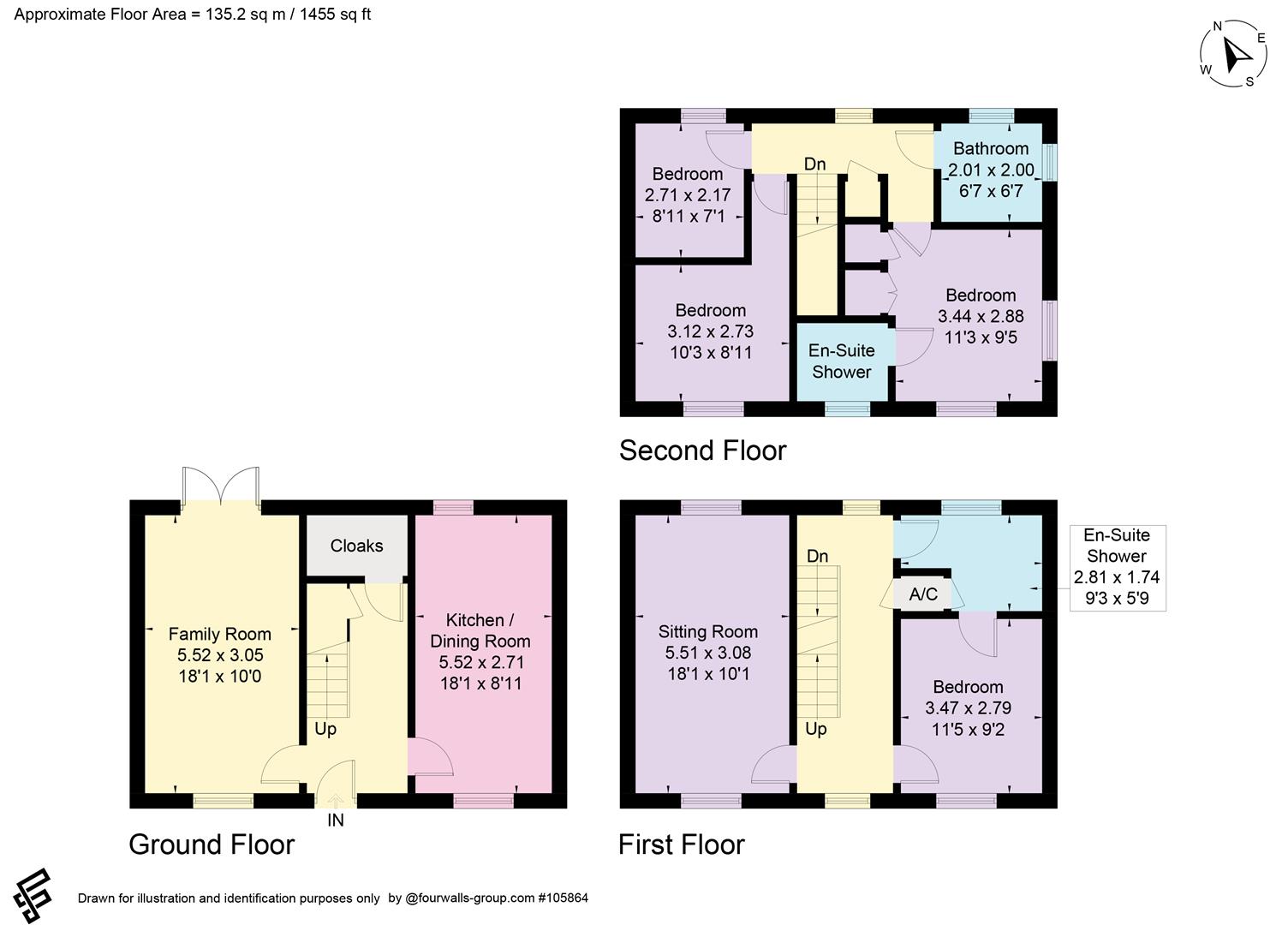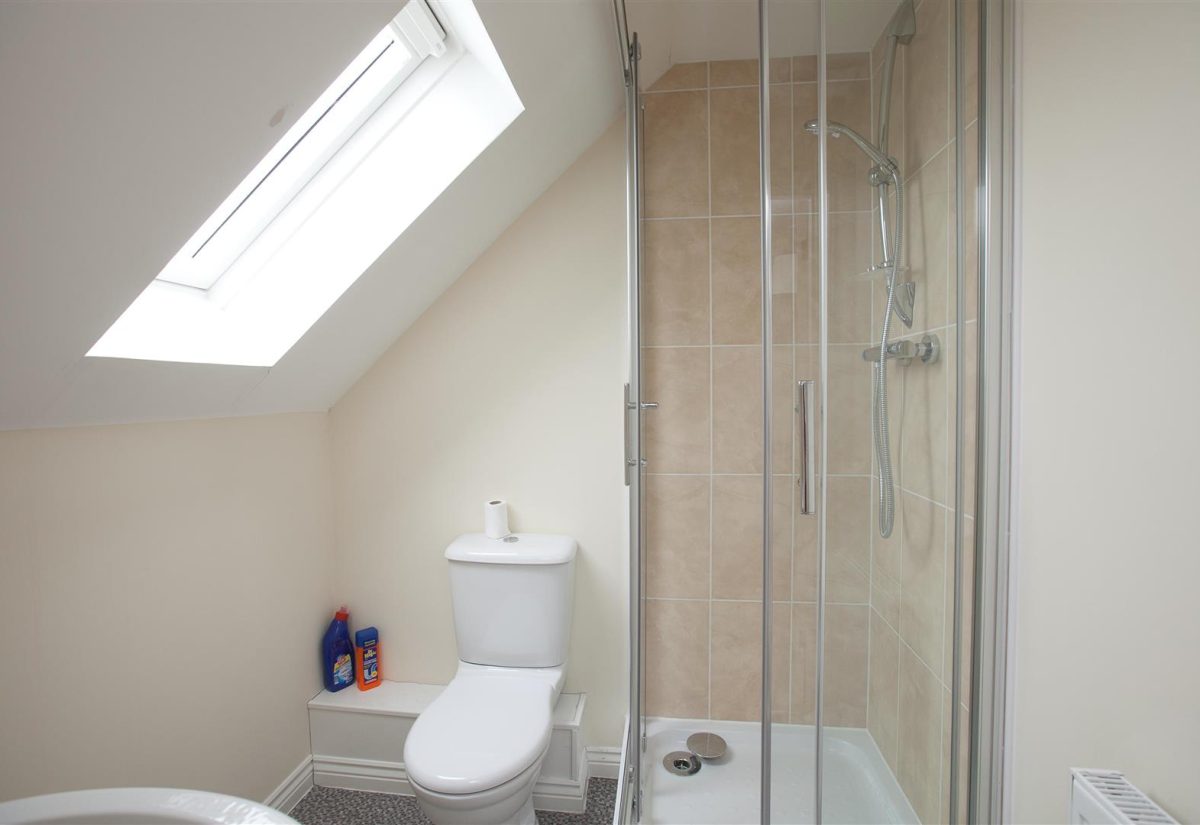 Stairs lead to the second floor, where the remaining three bedrooms are situated. The principal bedroom features fitted wardrobes and a walk-in ensuite. Two further bedrooms are also located on this level, along with a family bathroom fitted with a bath and shower over. The home also includes solar panels, adding to its energy efficiency.