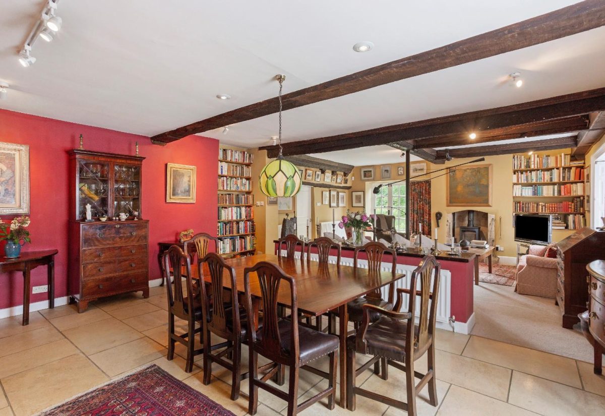 Moving through the house you are greeted by the first of the two main reception rooms, the first currently is laid out as an open plan dining room/snug living room featuring flagstone flooring and timber beams, a woodburning stove and French doors that lead into the garden. It is a very pleasant room that gets the sunlight throughout the day and afternoon due to its south westerly aspect.