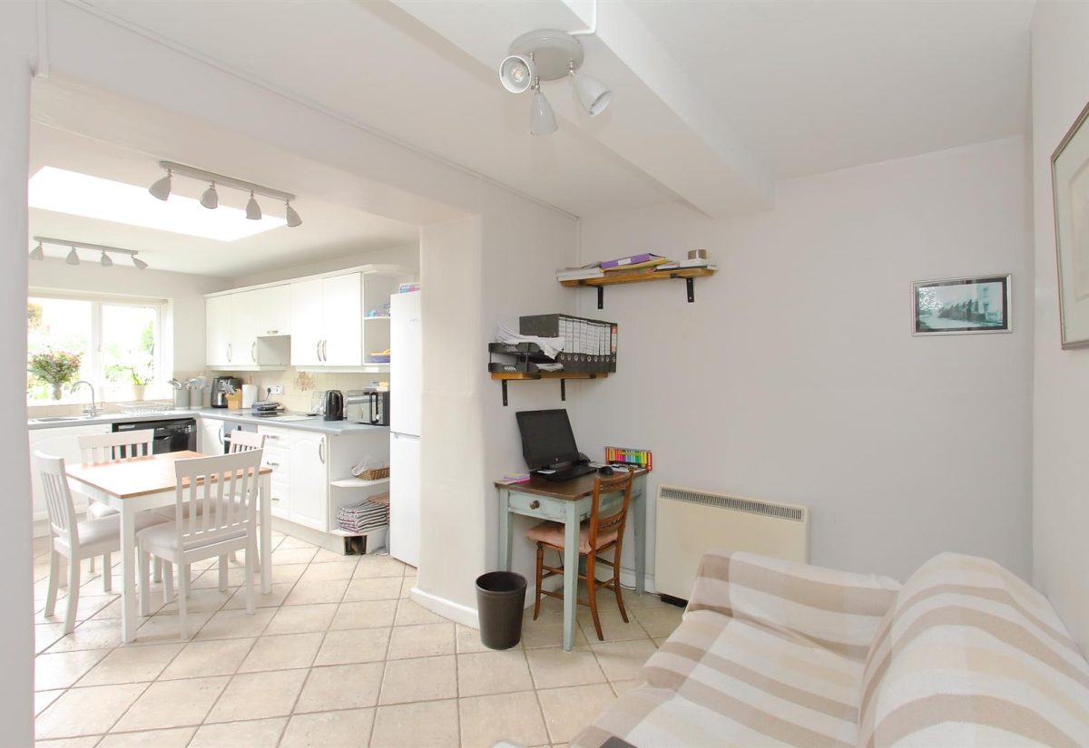 To the rear, a really successful addition is the extension providing an eat-in kitchen. Beautifully light with its double aspect, lantern light and door to the garden. There is space too, for a sofa area in the original part of the room.