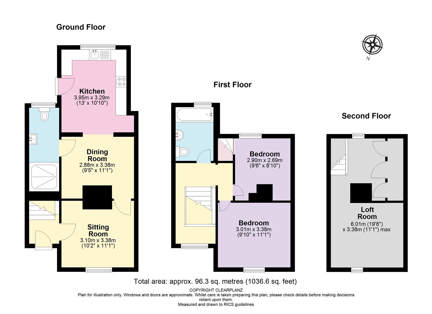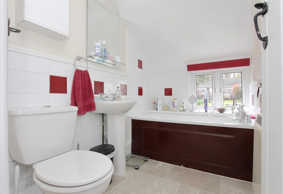 Upstairs, there are two bedrooms and a bathroom. The larger of the two rooms has a lovely view over the lane to the paddock to the front. The second at the rear, has stairs up to the loft room. This handy extra space has been carpeted and has natural light from the window in the gable end. We believe that there is scope (subject to planning) to extend the property to the side, giving a third bedroom, which would be easily accessible from the landing.