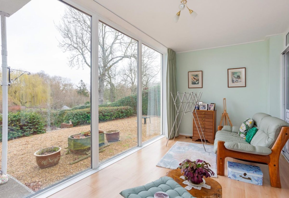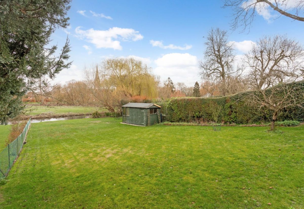 This attractive ground floor apartment provides well-arranged and generous living accommodation, amounting to c.1,284 sq ft. Of particular note is the attractive garden room, overlooking the rear garden, river and the water meadows beyond. The sitting room is bright and welcoming, with natural light coming in from both a large south-facing window and the aforementioned garden room. From the entrance hallway is access to all rooms within the property, plus a study area with room for a desk and chair. There’s a well-equipped kitchen with integral appliances and space for a tall fridge freezer and small breakfast table, two double bedrooms, one of which also has attractive views over the river and garden, and the family bathroom.